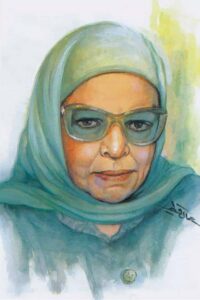 Portrait de Aïcha Abderrahmane.Aïcha Abderrahmane est une théologienne égyptienne, née en 1913 et morte en 1998.Elle est muhaqqiqa de la tradition littéraire et musulmane, exégète du Coran, journaliste et femme de lettres distinguée par plusieurs titres honorifiques.Elle enseigna l’exégèse dans quelques pays, notamment au Maroc à l’université de sciences islamiques à Qarawiyyine pendant plusieurs années.Elle écrit dans son excellent roman autobiographique (’Alâ al-jisr, bayna al-hayât wa al-mawt) qu’elle a grandi dans un environnement religieux. Son père, figure intransigeante, était un savant soufi azharite et enseignait les sciences islamiques, sa mère était de la lignée d’un Cheikh Al-Azhar (Chaykh Damhoujî), elle était entourée de mausolées et autres symboles de la spiritualité.Dès l’âge de cinq ans, elle commença à suivre les cours en sciences islamiques dans les Kuttâb selon la méthode traditionnelle d’al-azhar, tantôt par des chuyoukh détachés dans les villages, tantôt auprès de son père.Les cours étaient intenses, « six jours sur sept, du lever du soleil jusqu’à la prière du ’Asr ! », avec des chuyûkh intransigeants, écrit-elle, pendant que ses amies avaient le loisir et la liberté de s’amuser.Elle apprit le Coran, le hadith, les sciences pointues de la langue arabe, la poésie et les chansons soufies.A l’âge de 7 à 8 ans, alors qu’elle croisait la route de ses amies portant des uniformes et affaires scolaires attrayants, elle eut l’envie de fréquenter leur école pour filles.Lorsqu’elle formula cette volonté à son père, « c’est comme si j’avais prononcé une mécréance ! », écrit-elle dans son autobiographie.En effet, la réponse de son père était que « les filles des chuyûkh et savants n’ont pas à fréquenter ces écoles corrompues et corruptrices, mais apprennent chez elles ».Suite à cela, elle commença à se replier sur elle-même, préoccupant sa mère de son état. Celle-ci demanda alors à son grand père conseils et intervention.Le père de Aïcha finit par céder face à l’insistance du grand père mais à trois conditions : d’abord, qu’il ne soit lui-même impliqué dans aucune démarche administrative à l’école, ni de près, ni de loin. Ensuite, qu’elle poursuive en même temps ses cours religieux à la maison.Enfin, qu’elle cesse définitivement de se rendre à cette école dès l’âge de la puberté (à l’âge de 10 ans). Tellement heureuse, Aïcha s’investit davantage dans ses cours théologiques à la maison pour ne pas faire changer d’avis à son père, et après tout, la nouvelle école ne lui demandait pas beaucoup d’efforts.Les devoirs et exercices étaient « un jeu d’enfants », écrit-elle. Elle ne comprenait pas pourquoi ses camarades, sa maîtresse, y compris l’inspecteur, étaient subjugués par son niveau jugé exceptionnel, car dans son Kuttâb ainsi que dans l’institut de son père, plusieurs de ses camarades lui font la « compétition » dans l’apprentissage et la récitation du Coran.Arrivée à l’âge dix ans, sa mère et son grand père ont dû intervenir pour qu’elle poursuive ses études, non sans difficultés posées par son père, encore une fois, car elle dut s’abstenir de manger pour arriver à ses fins. Elle réussit tous ses examens, toujours au premier classement de sa promotion.Lorsqu’elle passa son certificat d’étude pour devenir enseignante, le jury l’interrogea sur le Coran, elle récita les sourates « Annour » et « Annisa », sans aucune difficulté, contrairement à ses concurrentes.Et lorsque le jury lui demande ce qu’elle connaît de la poésie, elle lui répond : « vous voulez quelle époque ? ».Surpris, ils lui demandent la Jahiliyya, elle récite alors la mu’allaqa de Turfa et un autre poème de Muhalhil. Le jury, impressionné, veut savoir jusqu’où peut-elle aller, il l’interroge sur l’époque islamique, elle se mit à réciter Ka’b Ibn Zouheir.Et ainsi de suite jusqu’à « l’époque contemporaine », et à ce moment là elle leur demande : « de mes poèmes ou d’autres ? ».Impressionnés, ils lui demandent ses propres poèmes. C’est alors qu’elle récite son poème exprimant la nostalgie de sa ville d’enfance « Dumyât ».Il est important ici de rappeler ces compétences linguistiques car elles vont lui ouvrir les portes des études exégétiques, linguistiques ainsi que de la critique littéraire.Précisons qu’elle écrira ensuite sur la célèbre poétesse Al-Khansâ, sur Zaynab (as) et autres figures féminines, et fera un tahqîq sur le géant de la littérature et poète Abou al-’Alâ al-Ma’arrî.Elle gardera un profond respect pour son père malgré son intransigeance jugée excessive puisqu’elle écrira sous pseudonyme pour ne pas le décevoir : « Bintu Achâtè’ », c’est sous ce nom d’auteur qu’elle écrira dans les journaux, notamment sur la condition rurale des agriculteurs…comme pour rendre hommage à l’environnement de son enfance.
