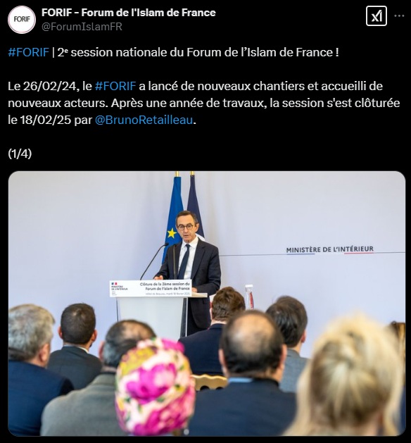 Le groupe de travail du Forif, Ressources et financement, a pour sa part annoncé l’achèvement d’un guide recensant les bonnes pratiques pour la gestion financière des mosquées. « C’est un projet bienvenu qu’il vous faudra développer et que l’Etat devra accompagner. Car j’ai bien conscience qu’il existe aujourd’hui des blocages qui ne peuvent être levés par votre seul volontarisme. », a reconnu Bruno Retailleau.