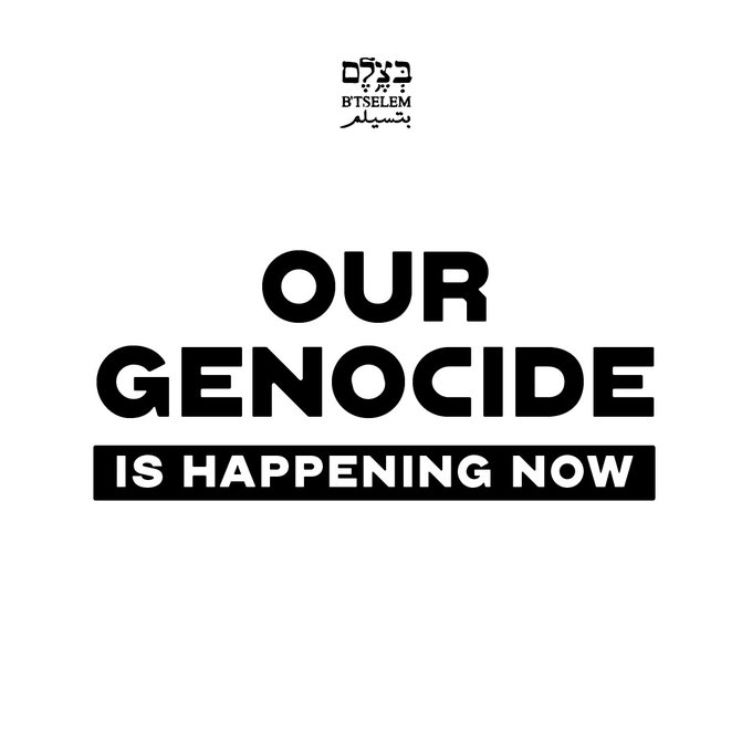 Selon B’Tselem, « Israël s’efforce délibérément et systématiquement de détruire la société et le peuple palestiniens dans la bande de Gaza », sur la base « de déclarations explicites de hauts responsables israéliens », mais aussi de faits documentés comme « la destruction de villes entières, (…) des infrastructures sanitaires et éducatives, des institutions religieuses et culturelles », le déplacement forcé des habitants, « la famine et des massacres de masse ».
