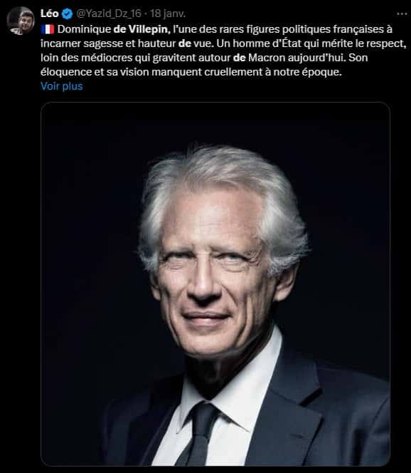 À 71 ans, Dominique de Villepin continue d’intervenir régulièrement dans le débat public, notamment sur des questions internationales, comme le génocide israélien subi par les Palestiniens de Gaza, ainsi que sur la crise politique en France, exacerbée depuis la dissolution de l’Assemblée nationale.