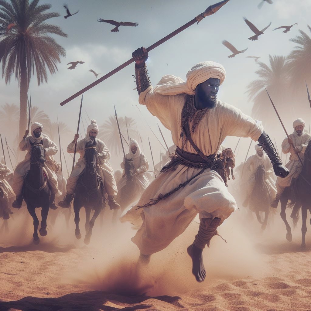 Je pris donc place parmi l’armée. Lorsque les deux camps s’affrontèrent, je me mis à chercher Hamza. Je finis par le distinguer au milieu du champ de bataille.. Alors je l’épiait, me tenant caché derrière des arbres et des rochers, jusqu’à ce qu’il s’approche de moi. À cet instant, Siba’ Ibn ‘Abd al-ʿUzzâ fonça sur Hamza. Mais celui-ci, d’un coup sûr, le frappa à la tête et le terrassa. Alors je pris ma lance, la fis tournoyer, puis je la lançai avec force : elle atteignit Hamza au ventre.
