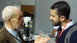 Jamel El Hamri (à droite) en discussion avec Larbi Kechat, ancien recteur de la mosquée Adda’wa et figure historique de l’islam de France.