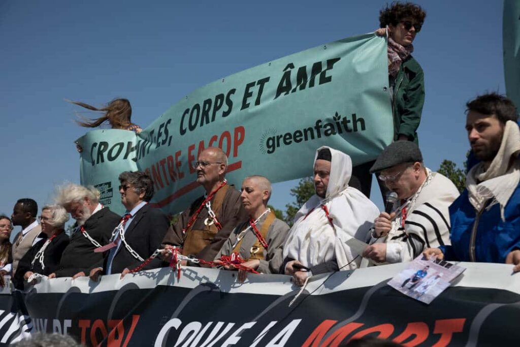 Selon l’ONG GreenFaith, co-organisatrice de l’événement avec Extinction Rebellion Spiritualités, les actionnaires de Total devront demain se prononcer « sur la stratégie climat de la multinationale, qui ne prévoit toujours pas l’arrêt du développement de nouveaux projets fossiles. »