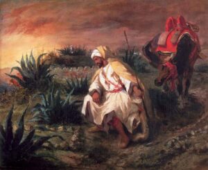 « J’en fais mon affaire », dit ‘Amr, fils de Zubayr, et il se mit en route pour la Mecque à la tête de sept cents soldats, dont l’avant-garde, composée de deux cents hommes, était commandée par Onaïs, fils d »Amr. Il emporta avec lui un carcan en argent, qu’il voulait mettre au cou d’Abdallah, lorsqu’il l’aurait pris. Abdallah avait formé un corps de troupes, composé de gens de la Mecque, de Bédouins et d’Abyssins. Arrivés devant la Mecque, ‘Amr divisa son détachement en deux corps. Il s’établit lui-même avec cinq cents hommes au Bat’hâ de la Mecque, et envoya Onaîs à Dsou-Towa, son plan étant de pénétrer dans la ville sur deux points différents.