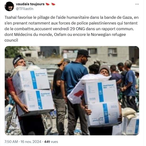 Les autorités israéliennes, accusées de ne pas prendre de mesures pour réduire les risques de pillage, continuent de refuser toute intervention et obstrue volontairement le passage des convois d’aide.