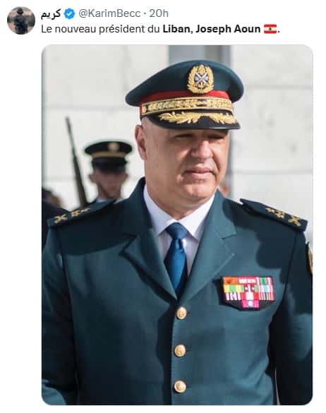 Joseph Aoun, a été élu président de la République par les députés du Liban. Lors du second tour de scrutin parlementaire, le commandant de l’armée libanaise a obtenu 99 voix sur les 128 députés. Il n’avait obtenu que 71 voix au premier tour de scrutin. Entre les deux tours, une rencontre entre les représentants du mouvement politique Amal avec Aoun a fait basculé des voix importantes en sa faveur.