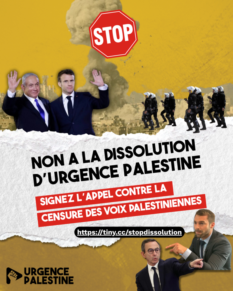 « Alors que le génocide s’intensifie à Gaza, alors que le siège affame et détruit tout un peuple, que fait l’État français de Macron et Retailleau ? Il prononce la dissolution de la principale organisation des Palestiniens en France », dénoncent les responsables d’Urgence Palestine dans un communiqué.