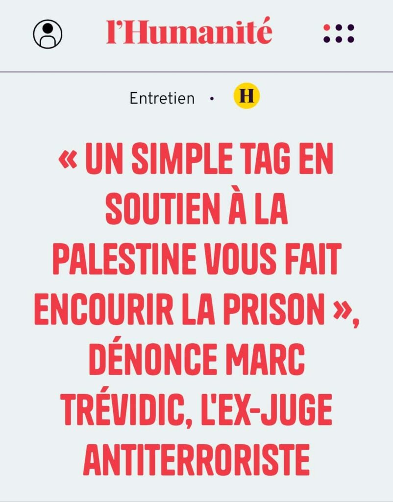 L’ancien juge antiterroriste Marc Trevidic, soutien de l’évolution répressive de l’apologie du terrorisme en 2014, déplore aujourd’hui « l’usage totalement dévoyé de la loi » dans les condamnations tous azimuts des défenseurs de la cause Palestinienne. Focus