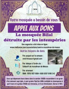Les puissantes intempéries de samedi dernier ont provoqué l’effondrement du toit de la mosquée Bilal située au centre de Meaux. Un appel aux dons a été lancé.