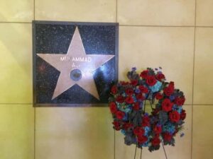 Montrant, par ce geste, son fort attachement à sa foi et à l’honneur du Prophète de l’Islam. Son étoile est donc la seule à être incrusté sur un mur.La seule étoile accrochée au mur sur Hollywood BoulevardMuhammad Ali fera diverses apparitions durant des cérémonies caritatives, médiatiques, sportives et olympiques ne craignant pas d’afficher publiquement sa faiblesse physique comme un symbole de force et de résilience.Il nous quittera à l’âge de 74 ans, le 3 juin 2016, avec une bonne partie du monde à « ses pieds » mais bien conscient que cette vie ne fut « qu’illusion et vaine parure » comme il le témoignera lui-même :