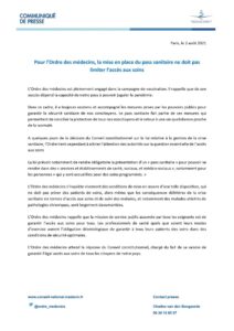 Institution de droit privé chargée d’une mission de service public, l’Ordre des médecins dont la fonction est d’assurer la régulation déontologique de la profession médicale vient de s’exprimer dans un communiqué de presse publié ce 2 août, à propos des effets du pass sanitaire sur l’accès aux soins des malades. Soutenant la politique de vaccination du gouvernement l’Ordre des médecins a néanmoins émis des réserves sur les effets du pass sanitaire qui impose des restrictions d’accès des malades aux hôpitaux et cliniques.« L’Ordre des médecins s’inquiètent vivement des conditions de mise en œuvre d’une telle disposition qui ne doit pas priver des patients de soins alors même que les conséquences délétères de la crise sanitaire en termes d’accès aux soins et de suivi des malades, et notamment des malades atteints de pathologies chroniques, sont largement documentées. »« L’ordre des médecins rappelle que la mission de service public assumée par tous les soignants est de garantir l’accès aux soins pour tous, expliquent-ils. Les professionnels de santé quels que soient leurs modes d’exercice auront l’obligation de garantir à tous les patients des soins dans des conditions de sécurité optimales. »