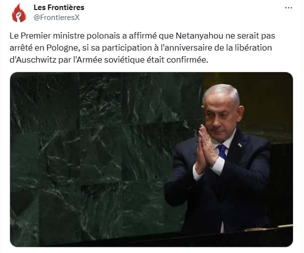 En novembre 2024, le CPI a émis un mandat d’arrêt contre Benyamin Netanyahou, pour crimes contre l’humanité liés au génocide en cours à Gaza depuis 15 mois. Ce mandat oblige les États signataires du Traité de Rome, dont la Pologne, à procéder à l’arrestation de Netanyahou s’il entre sur leur territoire. Cependant, le Premier ministre polonais Donald Tusk a déclaré, le 9 janvier, que Varsovie ne s’y conformerait pas :