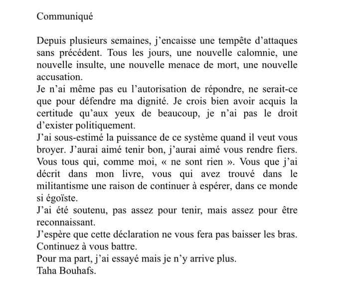 Taha Bouhafs se retire des législatives